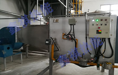 X-LE燃燒器安裝在風道中心,燃燒方向和氣流方向相同,其中燃燒器所需要的助燃空氣來自需要加熱的工藝空氣,燃燒器不需要單獨補充助燃空氣;由于火焰較短,整個風道內(nèi)不存在高溫區(qū)域,燃燒后釋放的熱量和工藝風迅速混合,保持良好的熱風均勻性。